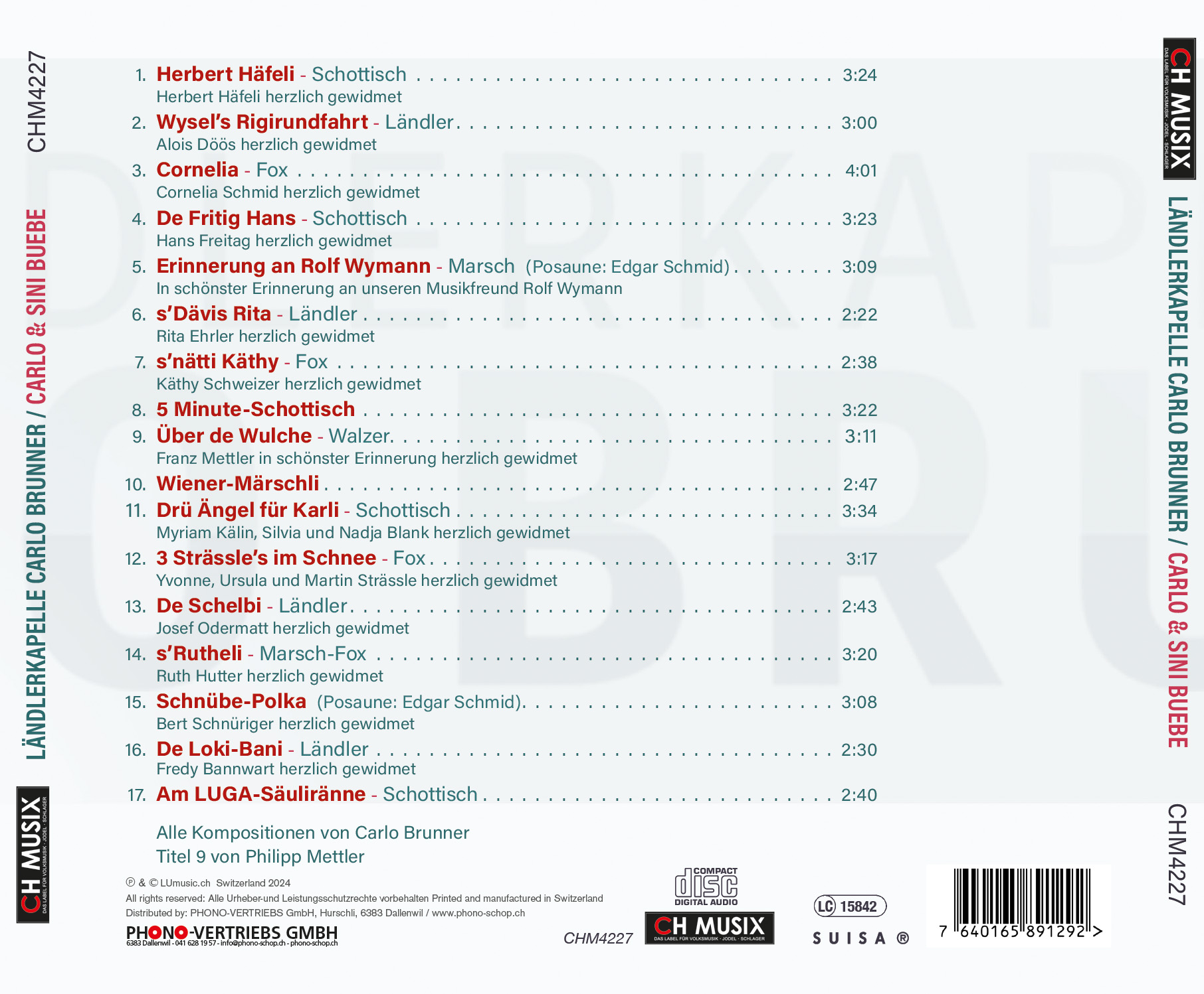 Mein alter Freund Carlo Brunner wird zwar nächstes Jahr 70 Jahre alt. Aber dieses Album mit nagelneuen Eigenkompositionen und seine erfolgreichen aktuellen Auftritte beweisen, dass der Grossmeister der Innerschweizer Ländlerszene noch längst nicht zum alten Eisen gehört. Und wenn Carlo jeweils sagt, er sei da mit seinen „Buebe“ unterwegs, so meint er damit nichts anderes, als dass er mit grossartigen Mitspielern unterwegs ist, die halt alle jünger sind als er. Denn seine 1970 gegründete Ländlerkapelle Carlo Brunner hat in den letzten paar Jahren einen eigentlichen Generationenwechsel hinter sich gebracht.